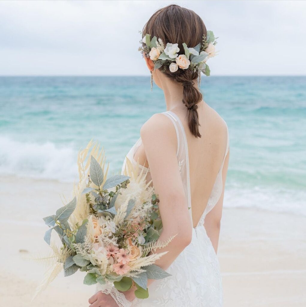 髪型を選ばず、ボリュームや形もヘアメイクさんと相談しながら付けられるため、ぶっつけ本番のフォトウエディングなどではとても便利です。