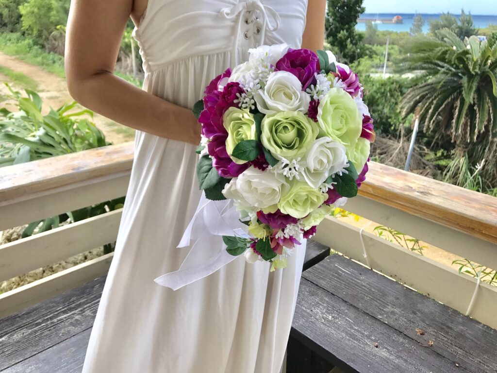 結婚式らしいブーケなのですが、キャスケードやラウンドよりは数が少なく、個性的といってもようのではないでしょうか。