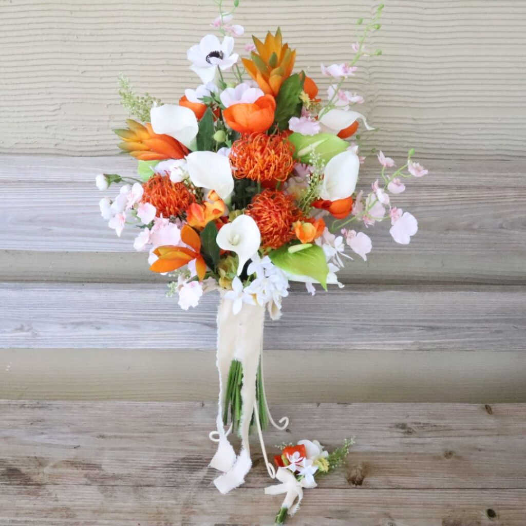 用意するだけで大変ですが、アーティフィシャルフラワーのブーケなら一つの用意でも大丈夫。
