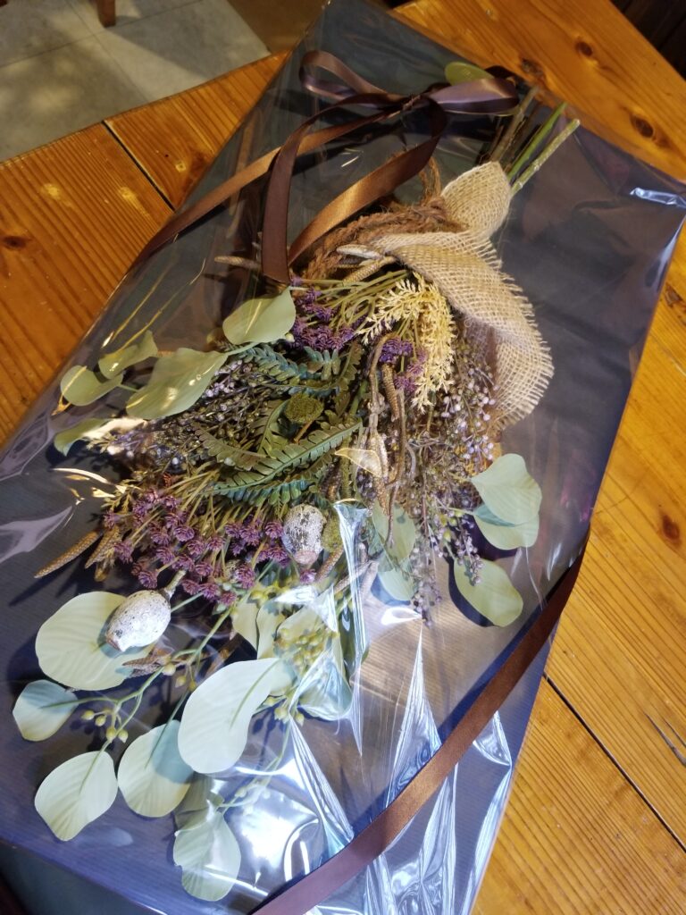 atflowerでは、スワッグに限らず、贈り物用にラッピングいたします。