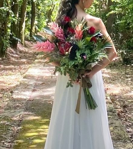 豪華さと華やかさがシンプルなドレスをより引き立て、フォト映えを狙うなら大きなブーケをお勧めします。