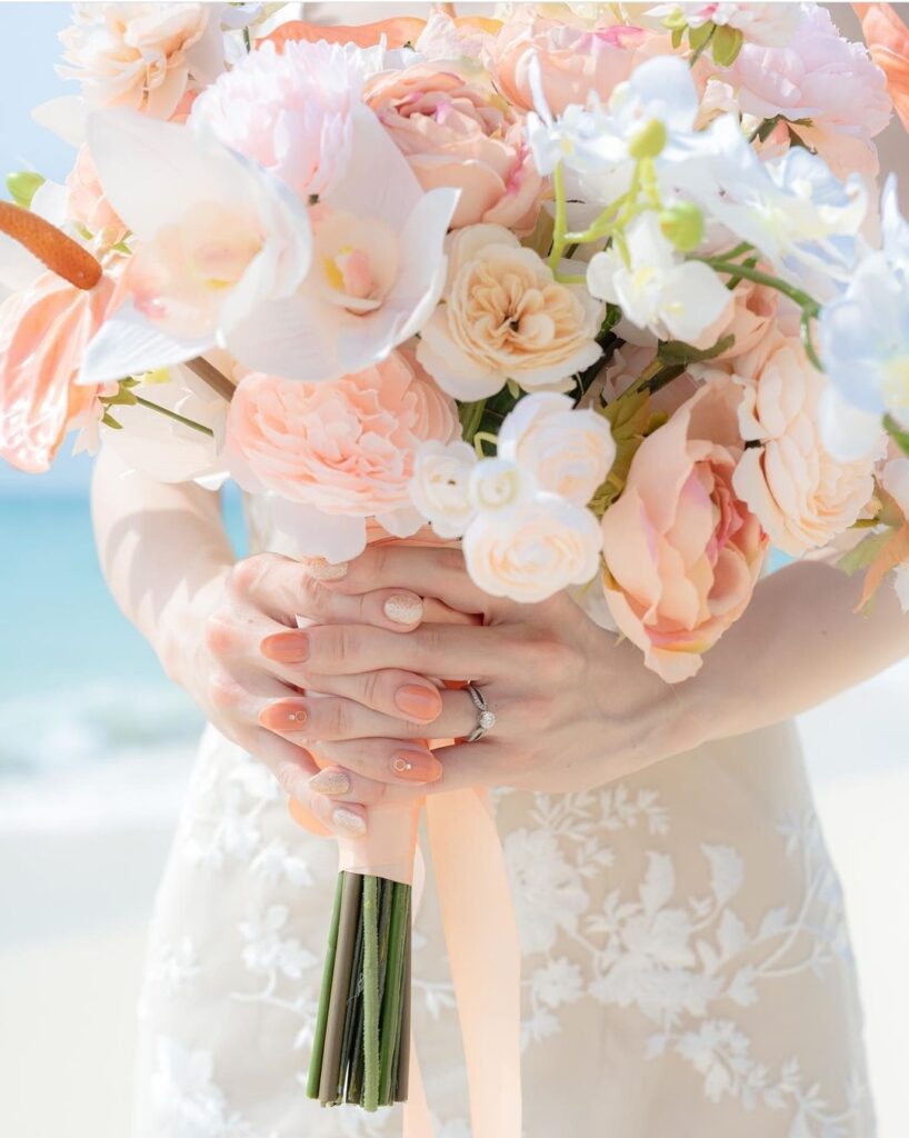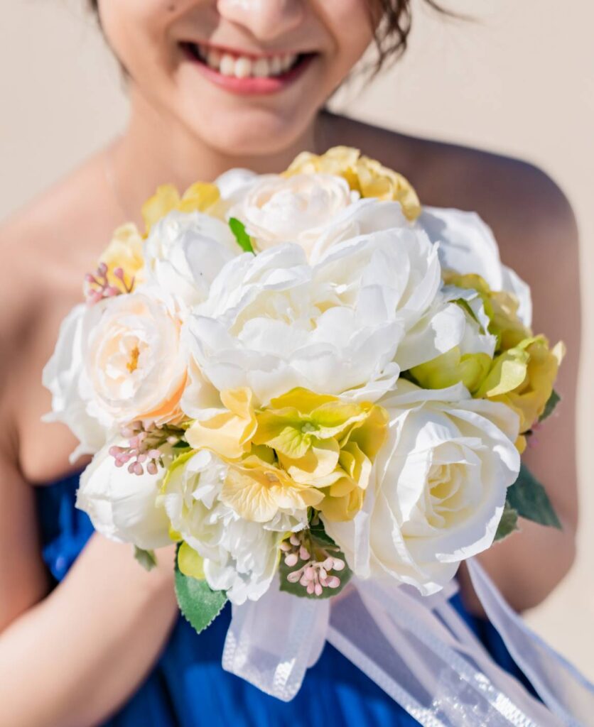 また、挙式から披露宴までブーケを持っていることが多い花嫁、ドレス姿に必ず映り込む大切なアイテムです。