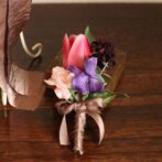チューリップやスイートピーなど春の花をテーマに、可愛らしくなりすぎずに大人っぽいイメージのブーケにしあげました。エアリーなクラッチブーケで、さりげなく、ドレスの邪魔にならないようなナチュラルなサイズ感です。
