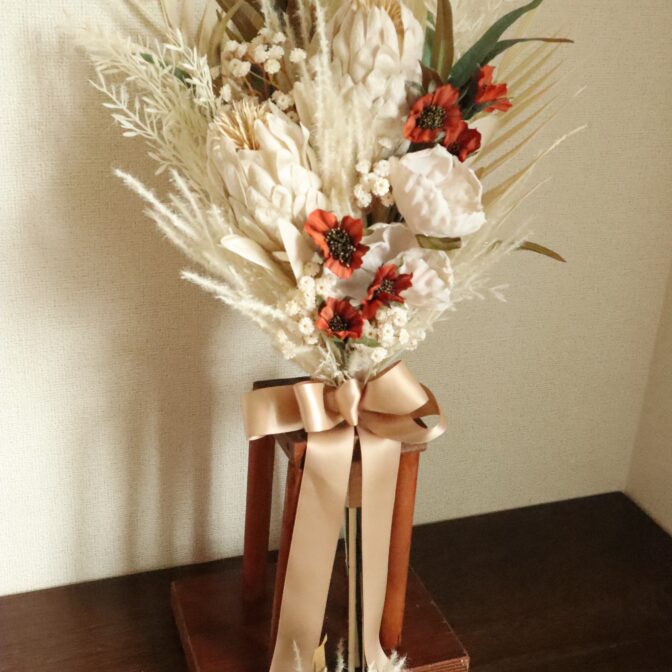 アーティフィシャルフラワーなので、ドライフラワーのように折れたり壊れてしまう心配がないので安心して使うことができます。