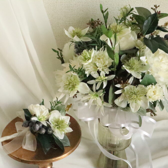 心を込めてお作りしたアーティフィシャルフラワーのウェディングブーケ・ブートニア、花冠、ヘッドピースなどをお届けしています。二次会やパーティーでもそのまま使えて、大切な思い出と一緒に半永久に残すことが出来ます。結婚式アイテムだけでなくスワッグやテーブルインテリア等もございます。オーダーのご相談も承っているのでお気軽にお問合せください。